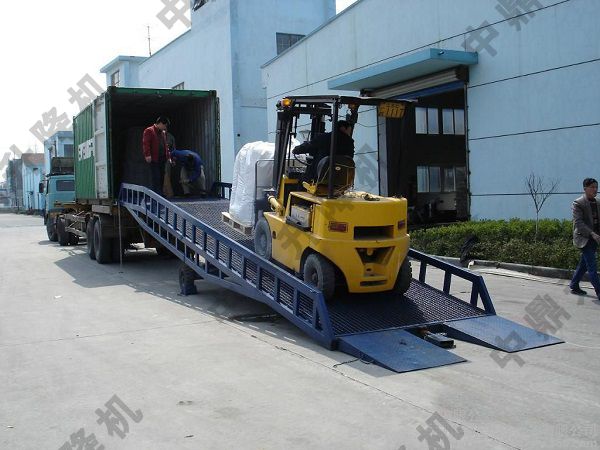 移動式液壓登車橋與叉車配合使用的貨物裝卸輔助設備,可根據汽車車廂的高低調節高度,叉車可以直接通過本設備駛入車廂內部進行貨物的批量裝卸,僅需單人作業,即可實現貨物的快速裝卸。它使企業減少大量勞力,提高工作效率,獲取更大經濟效益。