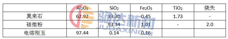 自流澆注料所采用的主要原材料性能指標見表1。
