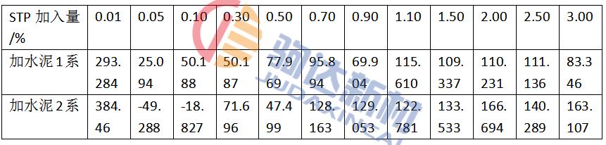 STP與SHP同為陰離子型添加劑,在水中可電離出陰離子基因。而水泥粒子及高鋁粒子與水接觸后,表面開始水化,會溶出Ca2+、Al3+,即:CaO·Al2O3+4H2O→Ca2++2Al3++8OH-