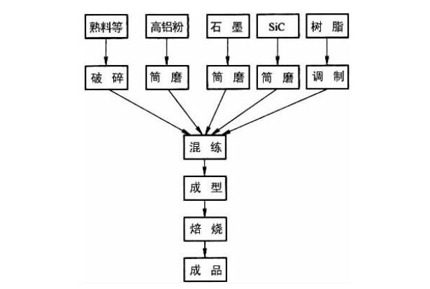 高爐鋁炭磚的品種不同,使用的原材料也有區(qū)別。耐火骨料和粉料主要用特級(jí)、一級(jí)礬土熟料,也可用白剛玉、棕剛玉等材料;炭素材料主要用鱗片石墨,還有中溫瀝青等;碳化硅則用特級(jí)或一級(jí)品,也可用致密SiC;結(jié)合劑用酚醛樹脂,其固含量≥75%,游離酚≤6%,殘?zhí)剂俊?3%-,含水率≤2%,密度1.1g/cm³左右。該磚用的耐火骨料臨界粒徑為8mm,其用配合比:粗骨料40%~60%、細(xì)骨料5%~20%、鱗片石墨8%~15%、SiC粉4%`10%耐火粉料15%~25%和結(jié)合劑4%~6%。另外,根據(jù)需要摻加超微粉、抗堿劑和膨脹劑等外加物。