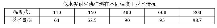 加熱爐在施工完畢后,澆注料砌體中含有大量的游離水和結晶水,需要進行烘爐操作。游離水在150~200℃的溫度下可以大量排除,結晶水在300~400℃的溫度下可以大量排除。低水泥耐火澆注料在不同溫度下的脫水情況見下表。