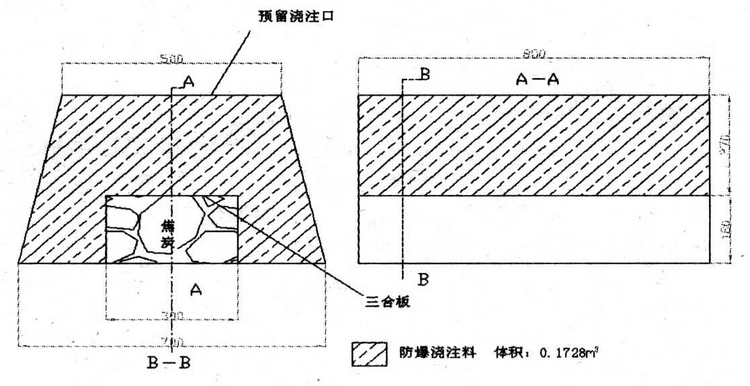 為了充分了解材料的防爆裂性能,我們進(jìn)行了放大樣的防爆試驗(yàn),模具尺寸如圖 1 所示,壁厚 270mm,用料量 500kg。 (1)攪拌:將生產(chǎn)預(yù)混好的材料加入 PBH88 液體 6%至可澆注成型,攪拌均勻后出料,出料口的半干料在正式使用前應(yīng)返鍋攪拌兩次,以確保均勻。 (2)澆注成型:為模仿現(xiàn)場(chǎng)溝體余熱,將攪拌好的漿料迅速倒入預(yù)先加熱的模具(涂好脫模劑)內(nèi),進(jìn)行振動(dòng)成型,使用振動(dòng)棒成型,在余熱的條件下材料施工作業(yè)性良好,振動(dòng)至表面返漿,排氣充分為止。 (3)快速烘烤:預(yù)制件成型后,自然養(yǎng)護(hù) 1h 左右基本硬化,將其放在事先砌筑好的防爆試驗(yàn)臺(tái)上,模擬現(xiàn)場(chǎng),不脫掉外面模板,使其氣體排出更加困難,試驗(yàn)條件比較苛刻。在預(yù)制件的芯模內(nèi)堆碼足夠數(shù)量的已燃焦炭,馬上直接鼓風(fēng)吹氧烘烤 30min,測(cè)量最高溫度在 1400℃以上。未出現(xiàn)爆裂情況,也沒(méi)有發(fā)現(xiàn)明顯的裂紋,完全滿足免烘烤的要求。